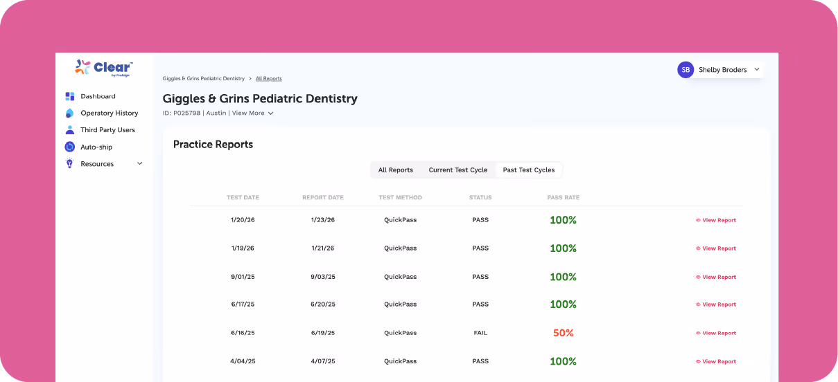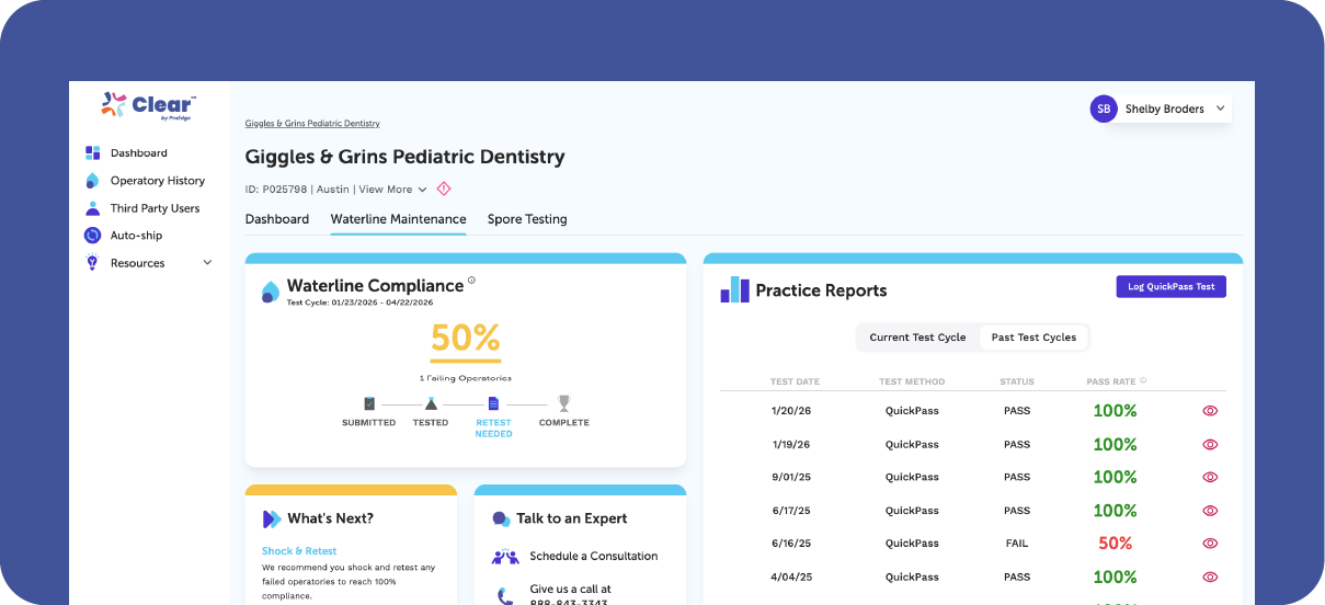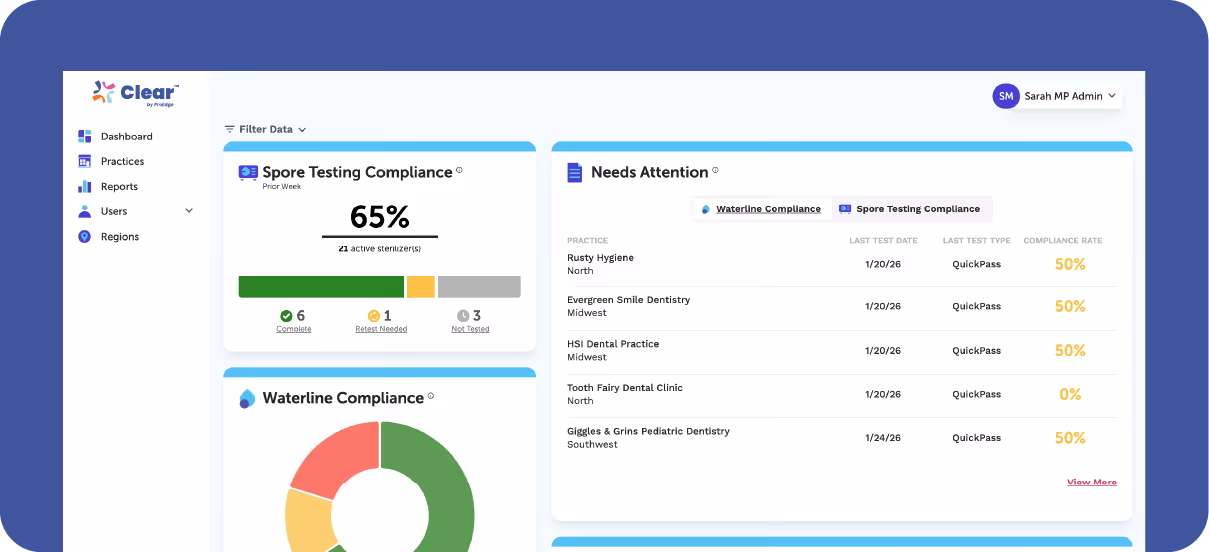 Clear™ organizes your results into actionable next steps. This helps you spend less time on waterlines and more time on patient care.