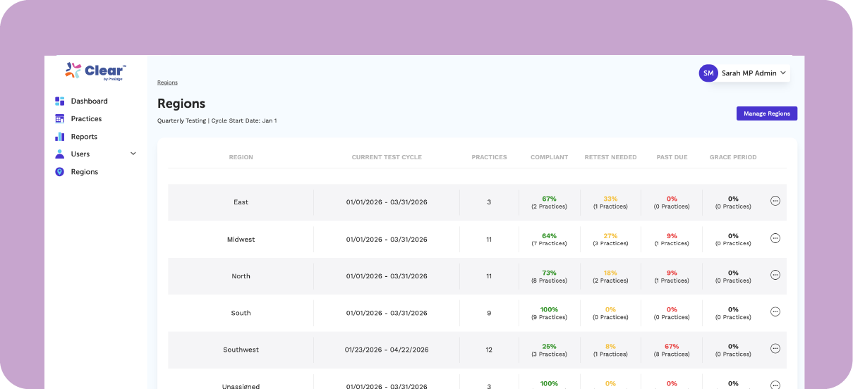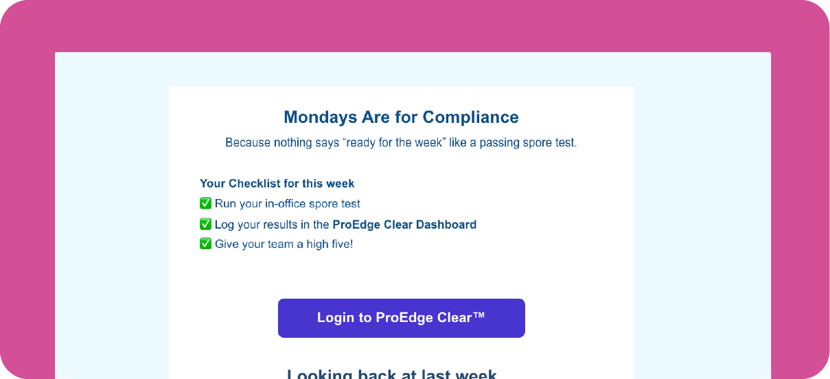 If you have sent in a mail-in test with ProEdge before, then your office most likely has a Clear account. Simply login to access your testing results and convenient compliance tools. Need some help? Reach out to our team – we’re happy to help you!